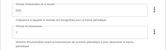 Note : Les capteurs communiquant via le protocol SIGFOX ne supportent pas le mode périodique avec historisation car la trame de Data est trop petite (11 octets) donc le seul paramétrage sans historisation est valide